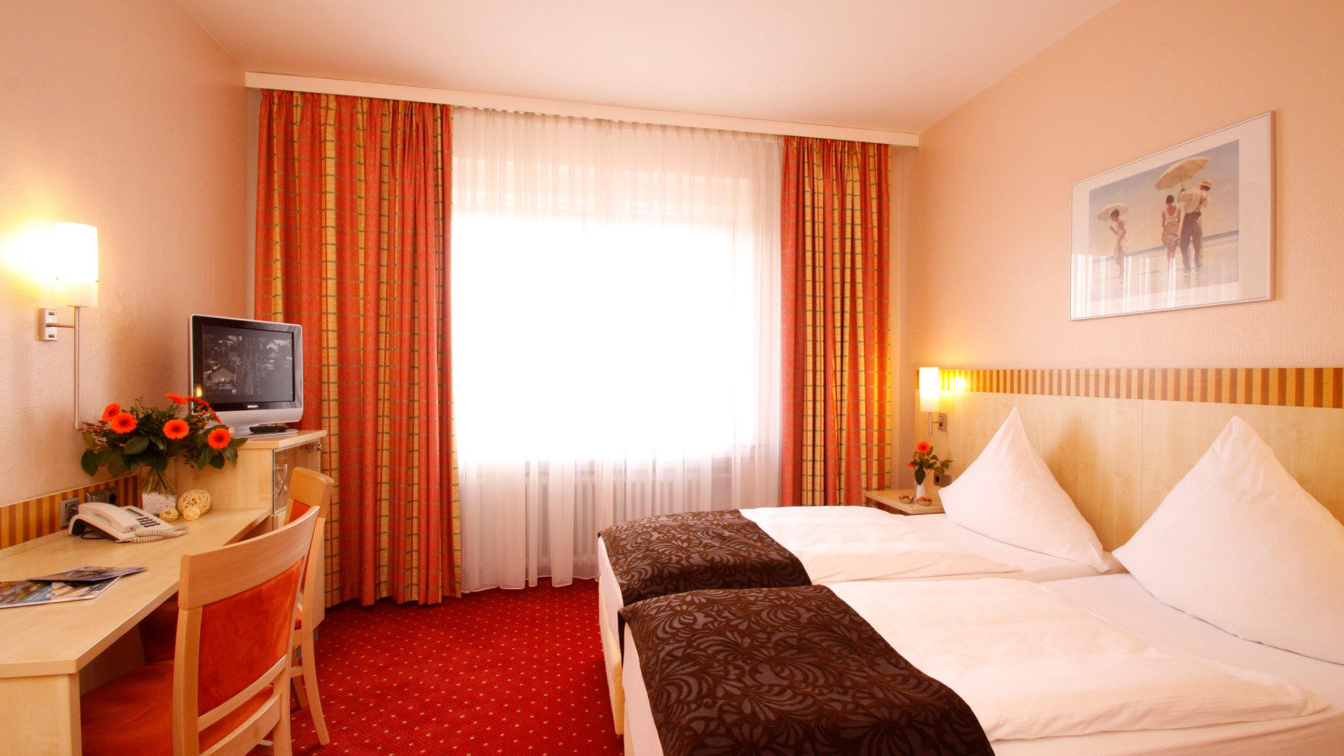 Onze gezellige Standaard kamers bieden moderne en heldere ruimtes tegen de beste prijs. Alle kamers zijn met geluidsdichte ramen uitgerust. Verdere uitrusting: minibar, moderne flat-TV met Sky Sport en 60 internationale zenders, high speed WLAN, directe telefoonverbinding en bureau. Ontbijt is inbegrepen.